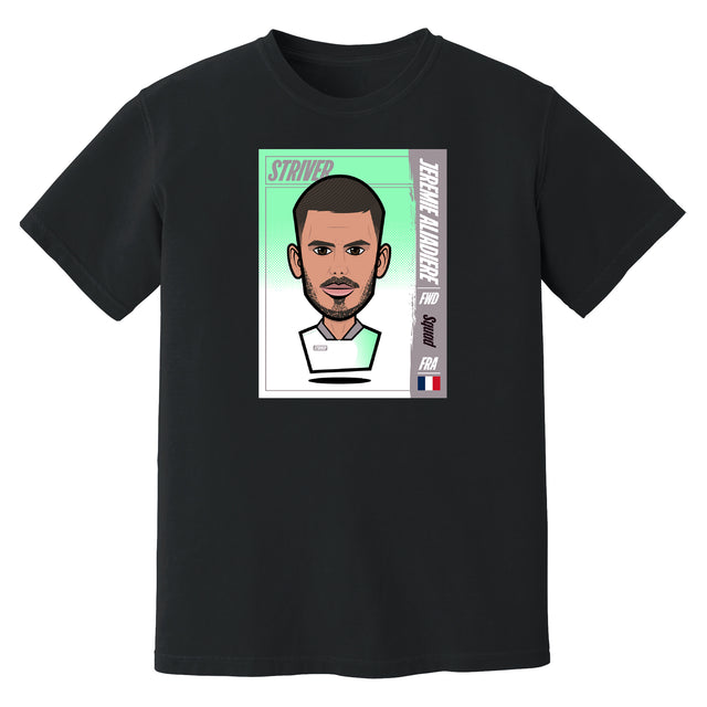 From Arsenal to Middlesbrough and beyond, Jérémie Aliadière carved out a career defined by hard work and versatility. The Aliadière Squad Tee captures his journey in bold cartoon style, framed like a classic trading card.